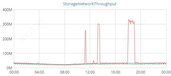 오로라의 네트워크는 EC2에의 오로라 프로세스에서 처리된 네트워크에 대해서만 확인이되고 EC2와 스토리지, 클라이언트 사이의 네트워크는 정확하게 확인이 어렵다. 즉 스토리지에서 인스턴스에 대량의 데이터가 올라올 때 EC2에서는 이를 다 수용하지 못하고 일부 프로세스에서만 처리하는 경우 지표에서는 낮은 수준으로 확인이 될 수 있다.